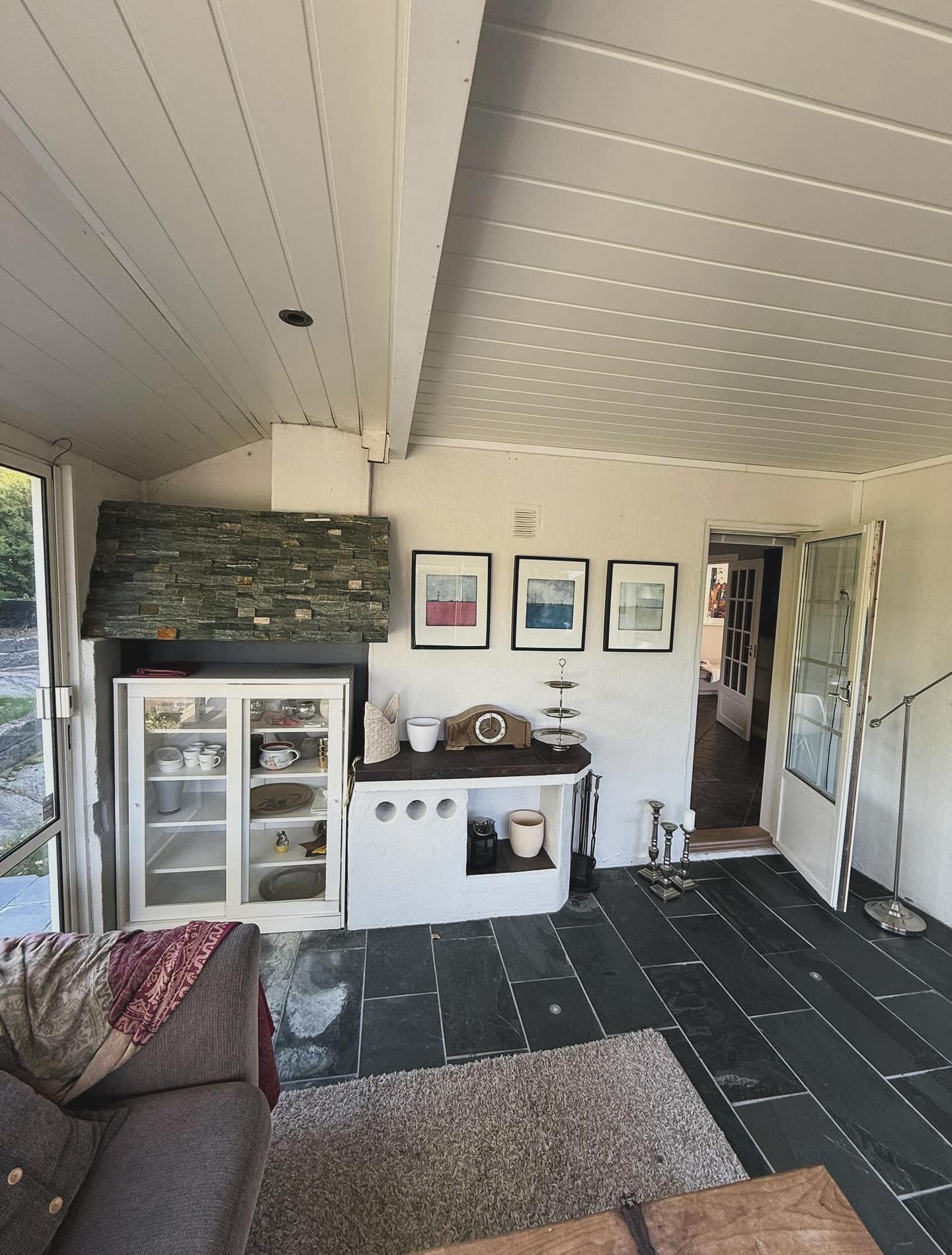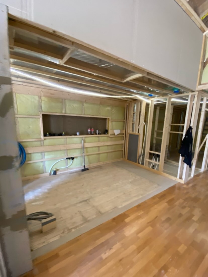 - Revet pipe og bygget opp igjen rommet med plassbygd hylle,