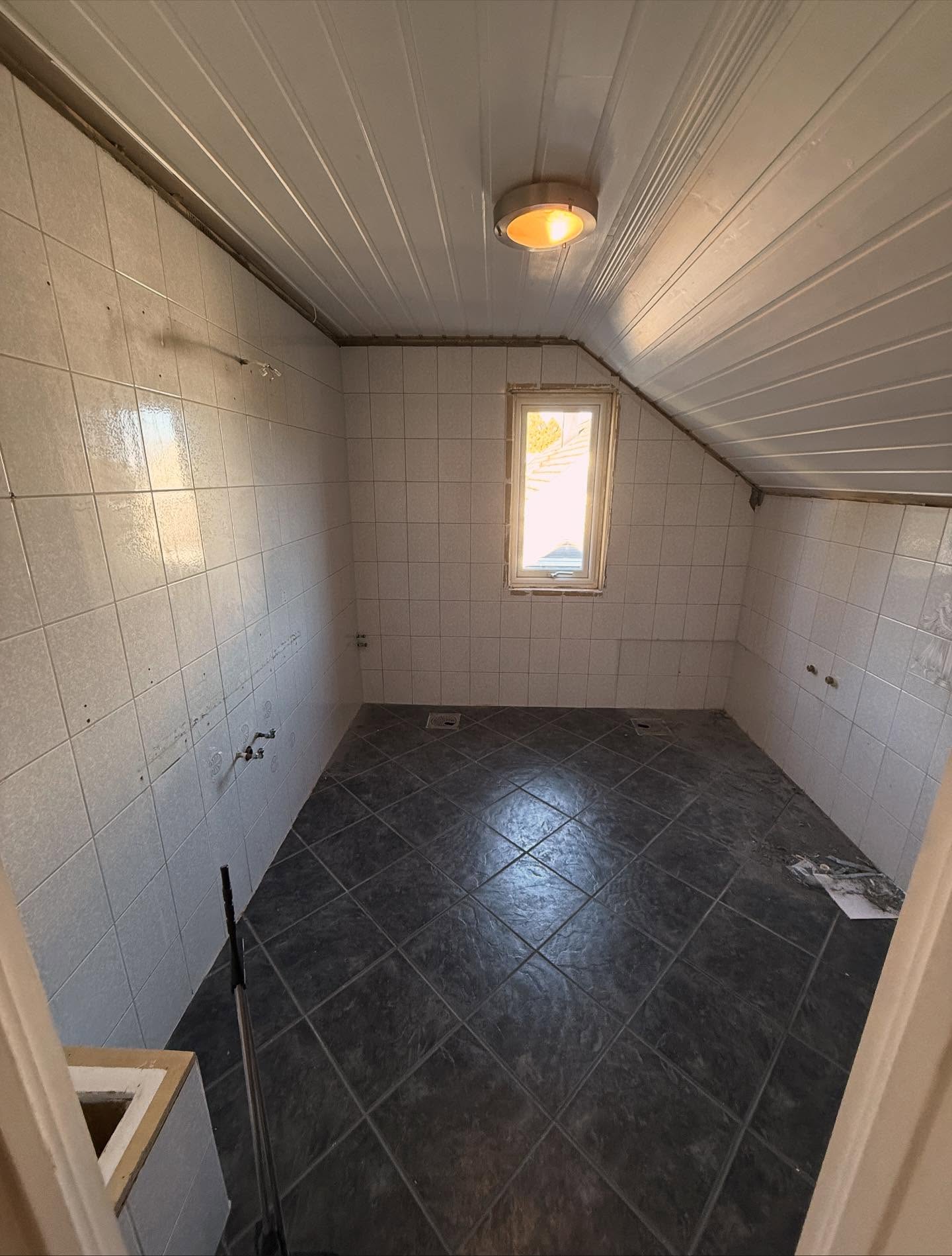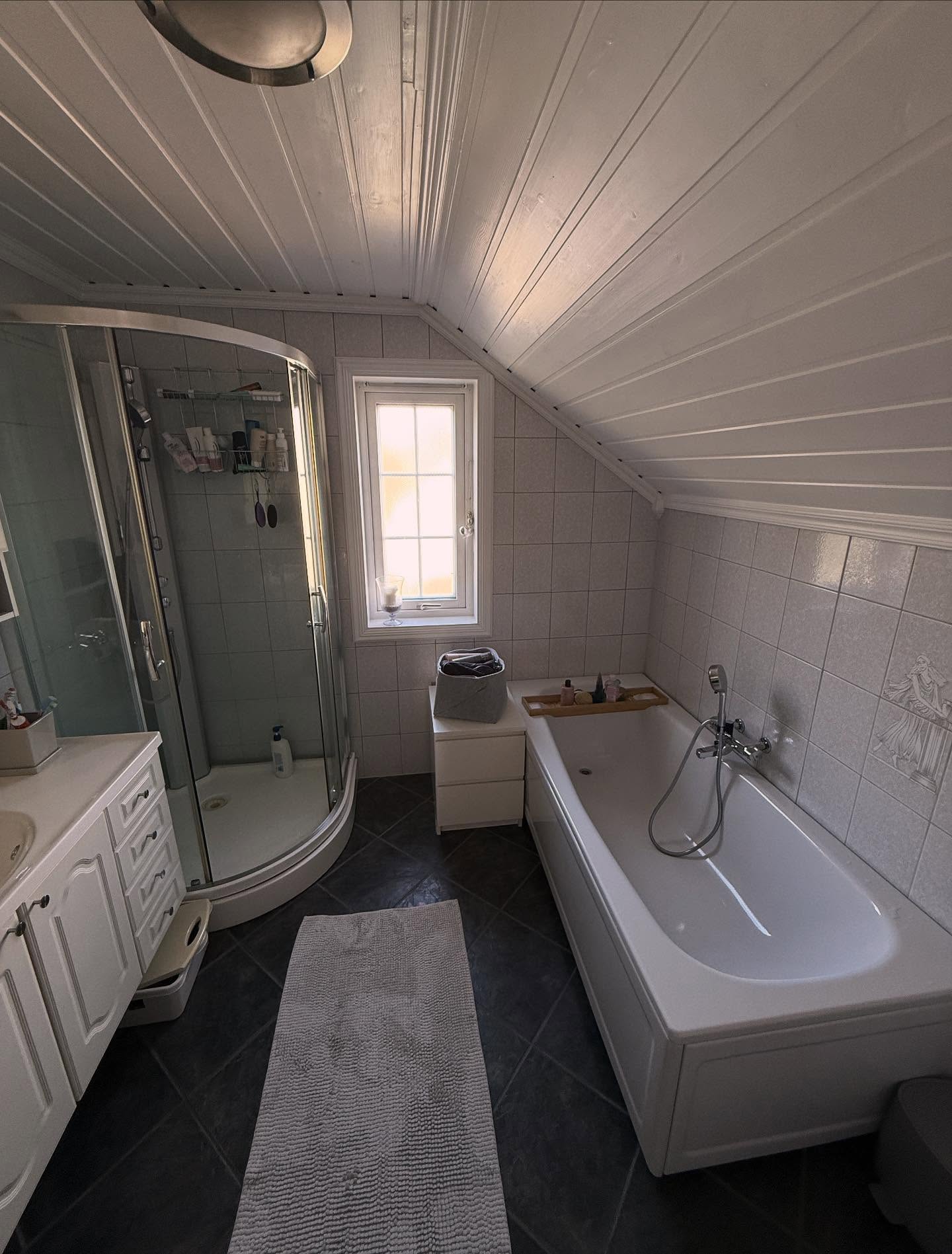 - Montert ny panel på vaskerom, og avsluttet med et helt nytt bad