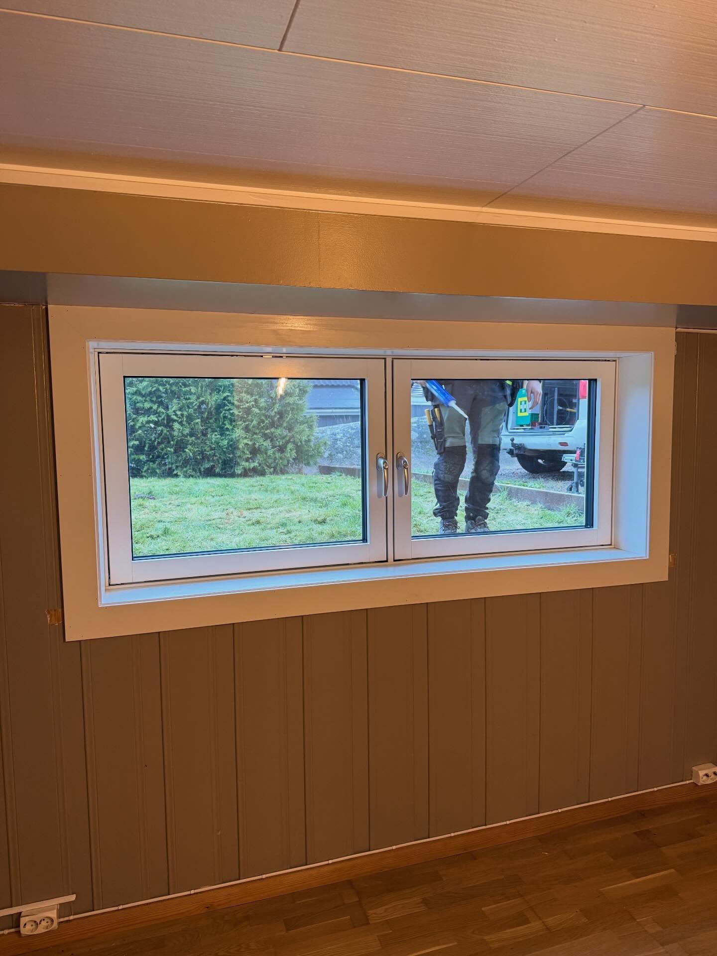 En liten endring med stor betydning. Vi har skiftet ut eksisterende vinduer med nye, som er godkjent som rømningsvei. Arbeidet inkluderte demontering, innsetting, isolering og listing. Resultatet er en tryggere bolig som oppfyller dagens forskriftskrav, samtidig som det ser nytt og pent ut.