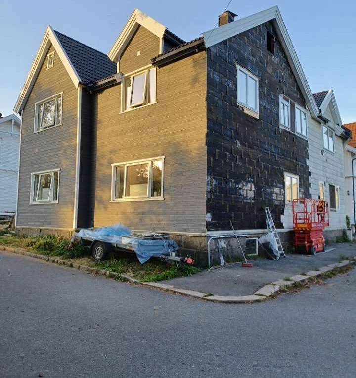 Vi har nettopp ferdigstilt jobben med å skifte bordkledning på denne boligen. Ved å bytte kledning sørger man ikke bare for at huset ser nytt og moderne ut, men man gir det også viktig beskyttelse mot vær og vind for mange tiår fremover. Et solid løft for både utseende og boligverdi!