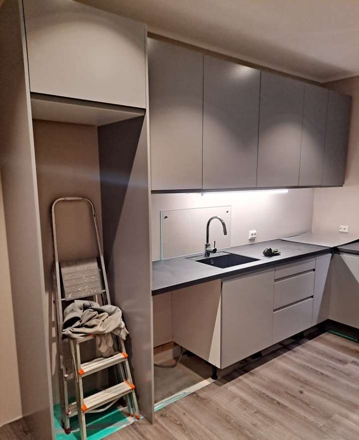 Vi har ferdigstilt denne stilige kjøkkenkroken. Selv om plassen er begrenset, er resultatet blitt både praktisk og lekkert med smarte løsninger fra Epoq. Det er utrolig gøy å se hvordan man kan maksimere potensialet i et rom med riktig planlegging og presis montasje.