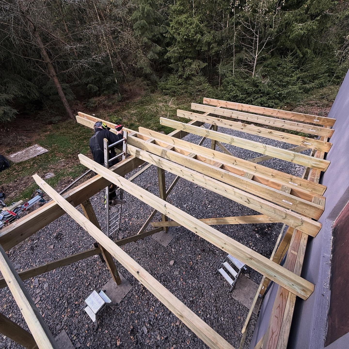 Trenger dere mer plass? Vi utfører alle typer utvidelser, fra tilbygg på grunnplan til påbygg i høyden og garasjer. Vårt fokus er en sømløs integrering med eksisterende bygningsmasse, slik at utvidelsen ser ut som en naturlig del av huset. Vi sørger for en ryddig prosess som øker boligens bruksverdi og estetikk.