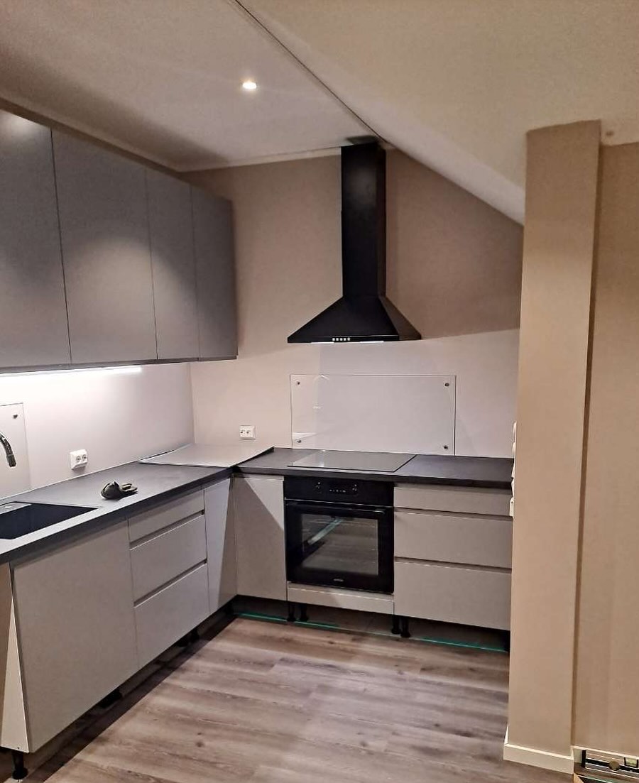 Det er lite som slår følelsen av å se et nytt kjøkken ta form. Vi har ferdigstilt et nytt kjøkken, hvor gammelt er byttet ut med moderne løsninger og god funksjonalitet. Fra de store linjene til de små detaljene. Nå er alt klart for gode matopplevelser og hyggelige stunder rundt kjøkkenbenken.